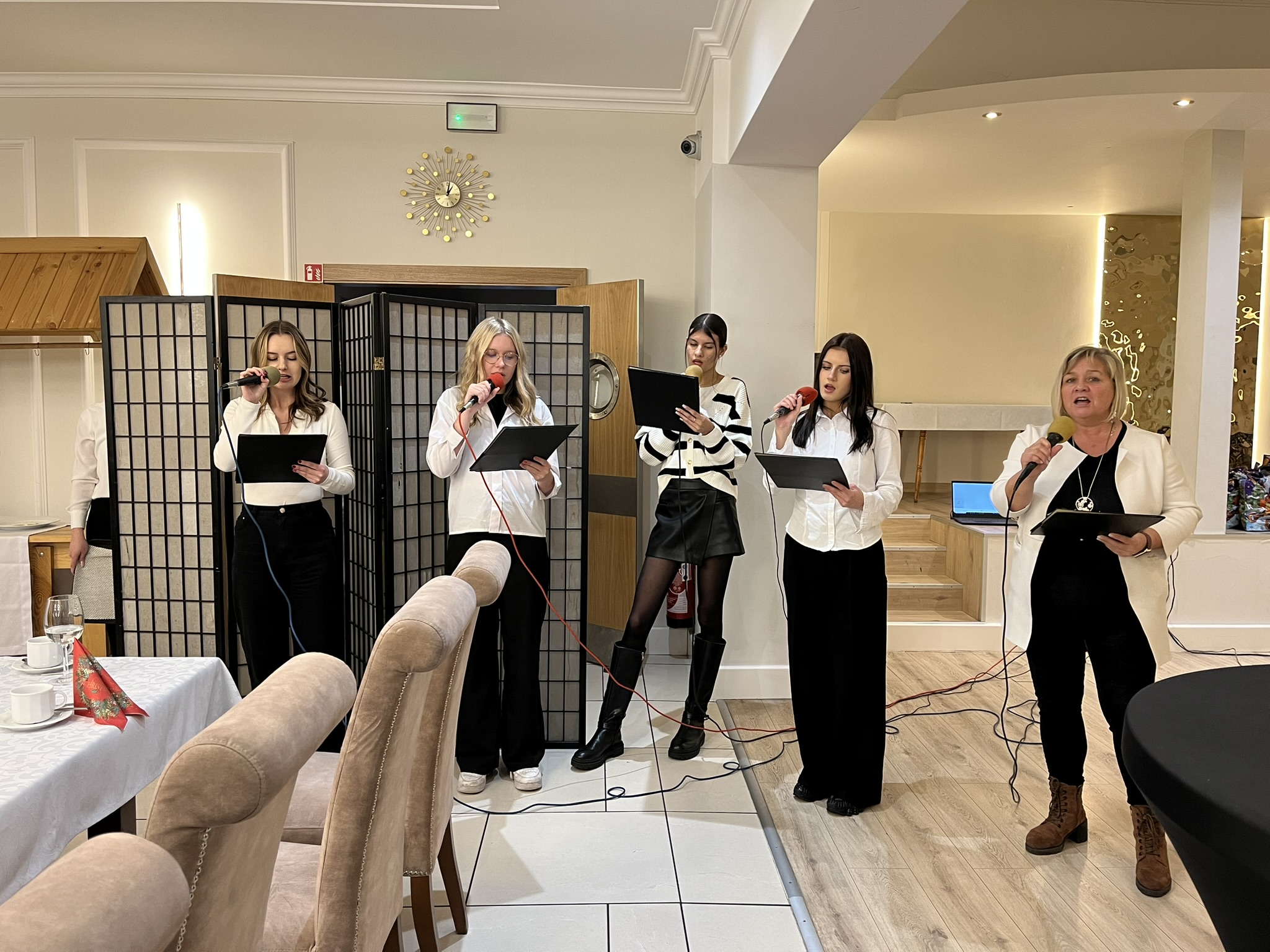 Dnia 2 grudnia 2025 uczniowie naszej szkoły włączyli się w pomoc organizowania spotkania opłatkowego dla osób starszych, chorych i samotnych, organizowanego przez dobrodzieński Caritas, które po Mszy Św. odbyło się w Park Hotelu. Uczniowie klas licealnych uświetnili również to spotkanie śpiewaniem kolęd.