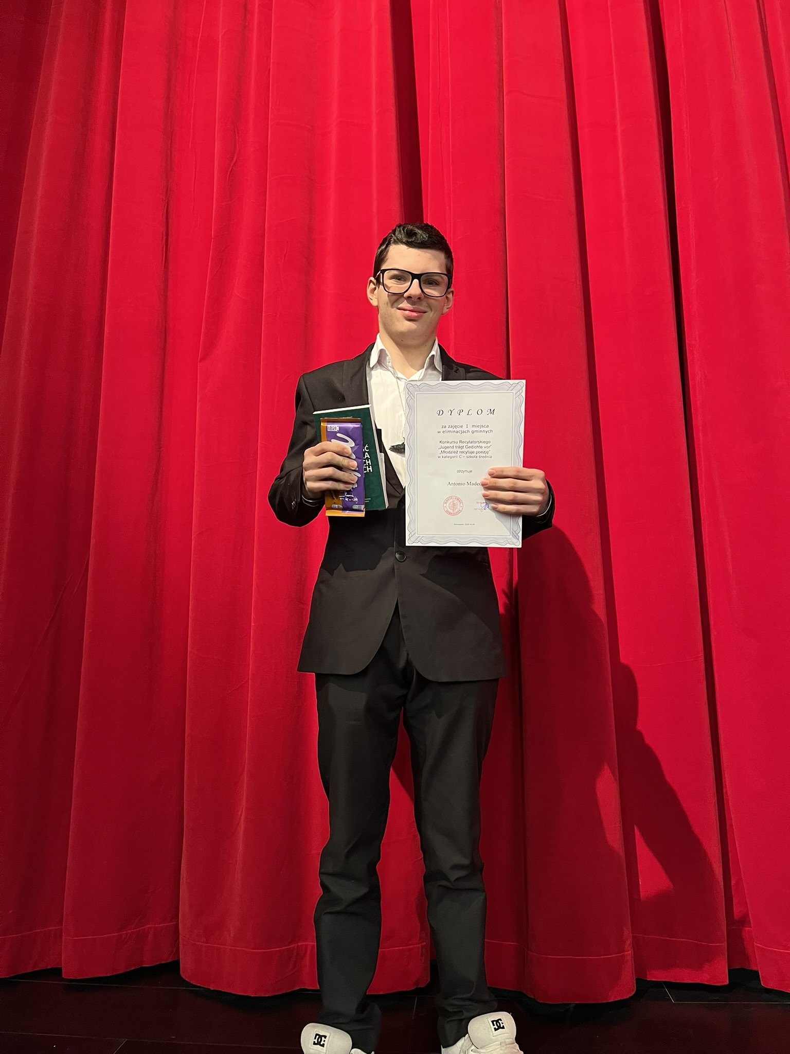 5 marca 2026 odbył się gminny etap konkursu recytatorskiego w języku niemieckim „Jugend trägt Gedichte vor” („Młodzież recytuje poezję”), w którym wziął udział nasz uczeń kl.1 LO Antonio Madeo. Antonio wyrecytował w języku niemieckim wiersz Kurta Tucholsky’ego „Mikrokosmos” zajmując 1 miejsce w kategorii szkół ponadpodstawowych. Powiatowy etap konkursu odbędzie się 14 kwietnia w Oleśnie. Gratulujemy Antonio i życzymy powodzenia w następnych etapach!